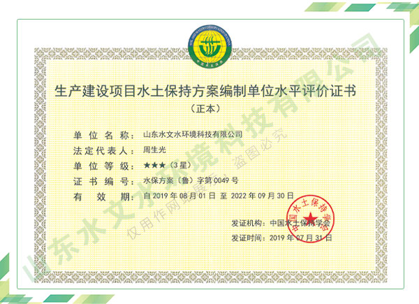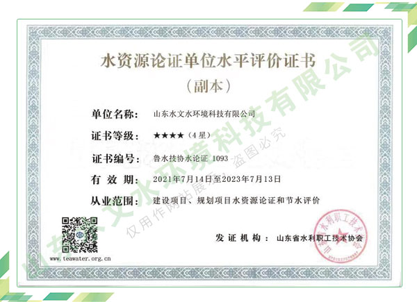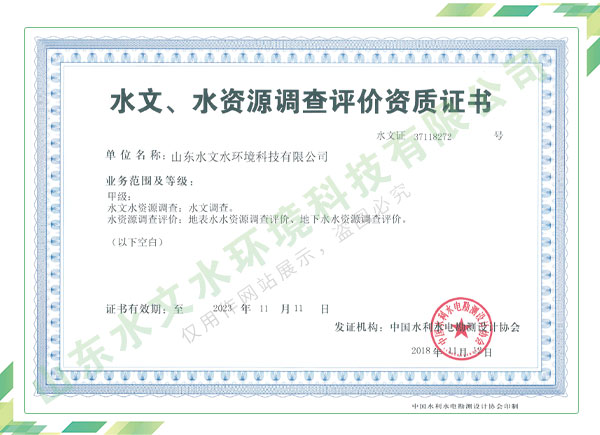 公司擁有水利工程設計、水土保持、水文水資源調(diào)查評價、水資源論證、建設項目環(huán)境影響評價、市政公用工程施工總承包、水利水電工程施工總承包、電子與智能化工程專業(yè)承包等資質(zhì),2017年通過質(zhì)量管理體系、環(huán)境管理體系、職業(yè)健康安全管理體系認證;2020年被評為國家級高新技術企業(yè),同年被中國水利企業(yè)協(xié)會推薦為第一批“合同節(jié)水服務企業(yè)”;2021年被山東省、濟南市評為 “專精特新”中小企業(yè)。業(yè)務范圍涉及水利工程設計;節(jié)水設計、改造、水平衡測試;山洪災害調(diào)查;城市水資源調(diào)查評價;建設項目水土保持方案編制、監(jiān)測、驗收、水土保持規(guī)劃;水安全保障規(guī)劃、建設項目水資源論證、規(guī)劃水資源論證;建設項目環(huán)境影響評價;入河排污口論證;防洪影響評價;市政公用工程施工、水利水電工程施工、電子與智能化工程施工等。